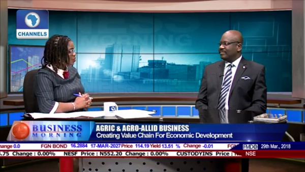 Discussing the creation of economic development in Nigeria at agricultural value chain for Channels Television, Lagos.